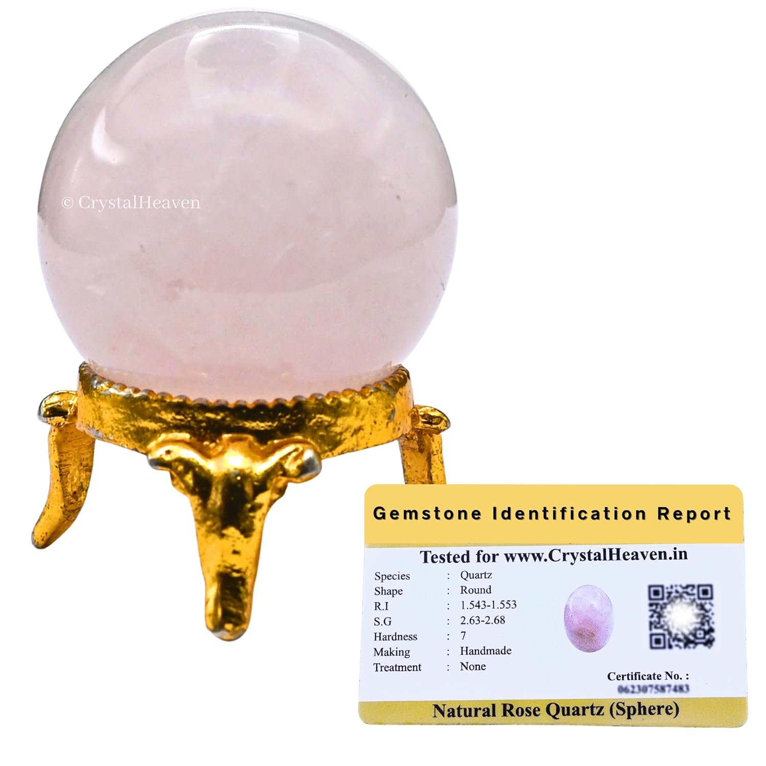 Certified Rose Quartz Crystal Ball for Meditation – Premium Crystal Vastu Items for Home and Feng Shui Items for Good Luck – Ideal for Pooja Supplies and Spiritual Practices (2″ Inch)