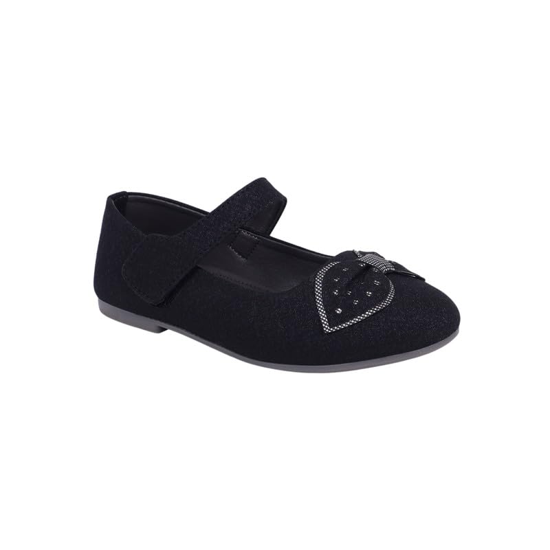 Superminis brings you Girls stylish Shoes, designed with a unique blend of modern style and traditional charm. Featuring a Juti-inspired design, these shoes capture the essence of ethnic footwear while maintaining the comfort and practicality of modern shoe. The stunning Black and Golden color combination, paired with delicate light glitter detailing and a charming front bow embellishment, makes these shoes ideal for festive occasions or everyday elegance. These shoes are available in sizes for girls aged 1 to 8 years. Made from synthetic material, they offer durability with a smooth finish. The soft cushioned insole ensures exceptional comfort, and the Velcro strap provides a secure and adjustable fit for easy wear.