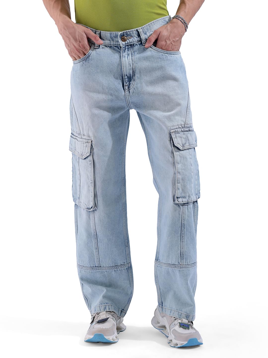 The Indian Garage Co Men Relaxed Fit Distressed Mid-Rise Cargo Denim